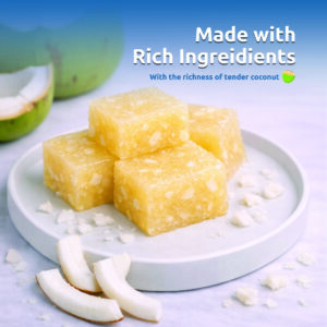 Experience the essence of Kerala’s coastal paradise with our Kozhikoden Tender Coconut Halwa. Crafted with care and precision, this indulgent delicacy encapsulates the refreshing taste of tender coconut, evoking memories of lazy days by the palm-fringed beaches. Each velvety bite is a symphony of tropical flavors, with the sweetness of coconut perfectly balanced against the rich texture of halwa. Whether you’re indulging in a moment of relaxation or sharing the joy of Kerala’s culinary heritage with loved ones, our Tender Coconut Halwa promises a sensory journey like no other. Immerse yourself in the warmth and flavor of Kerala with every delectable mouthful.